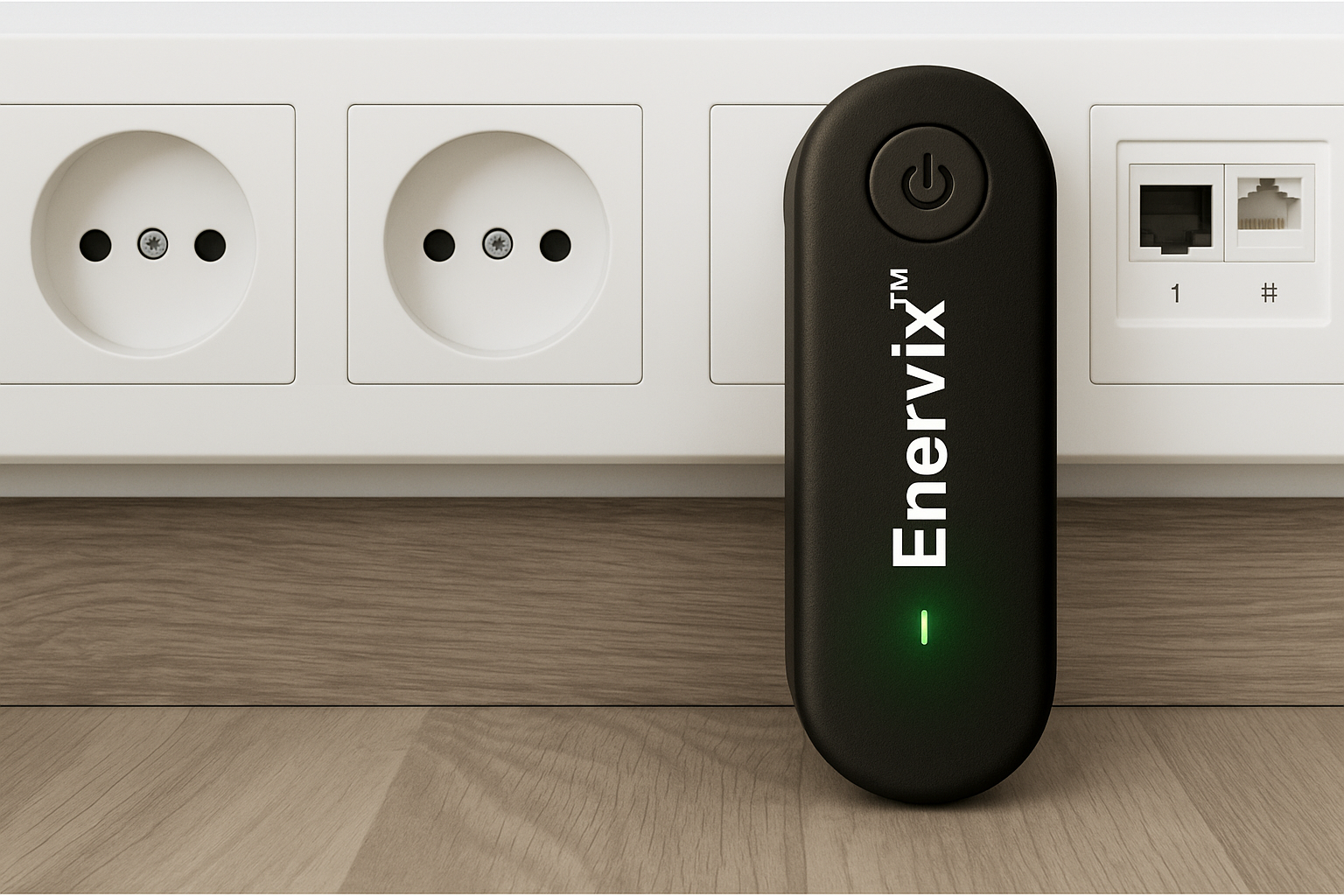Dit is hoe de Enervix™ eruitziet. Het is een klein kastje dat je in een willekeurig stopcontact kunt steken. Het voordeel: iedereen kan het gebruiken, of je nu in een appartement woont, een rijtjeshuis of een vakantiehuis. Het enige dat je nodig hebt, is een vrije wandcontactdoos.